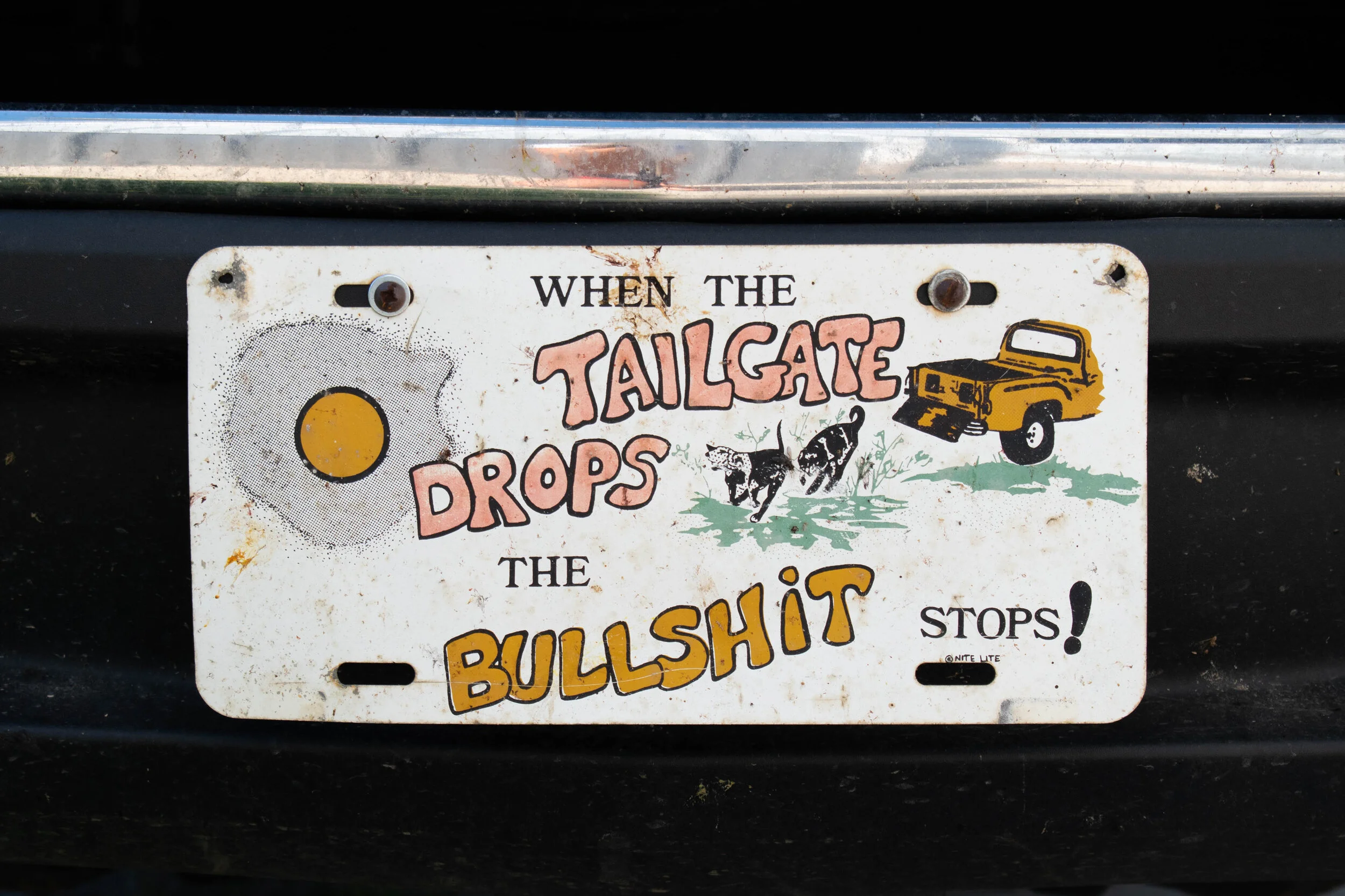 Zeke Shepherd, one of the Koth’s farm hands, pulls up onto the farm in the early hours of the morning and parks in front of the barn in Kinde, Michigan, toting this plate on the front of his truck on August 25, 2020. The Koth family, Don, Kelli, and their three children: Noah, 16, Sara, 14, and Dana, 12, all work on the farm and have two hired farm hands, Kenny and Zeke.